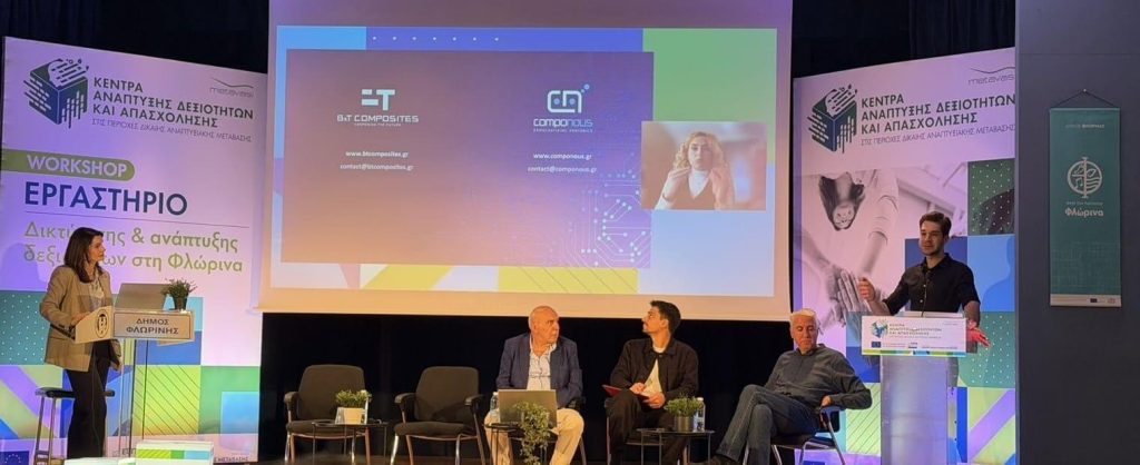 B&T Composites and Componous had the opportunity to participate in the 1st Workshop “Florina 2025: Building the Future – Partnership for Skills Development, Innovation, and Entrepreneurship”, organized by Metavasi S.A. and the Skills Development and Employment Center of Florina.