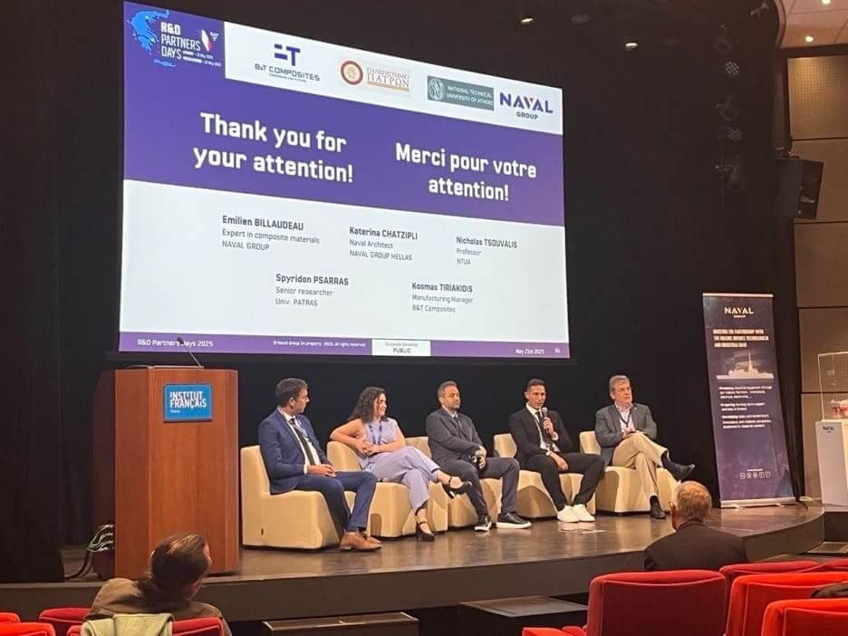 B&T Composites was honored to participate in the NAVAL GROUP R&D Partners Days 2025, held in Athens, an event focused on advancing collaborative research, technological innovation, and applied R&D in the naval sector.